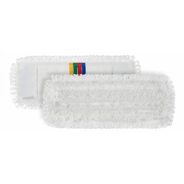 Карманы мопа позволяют быстро и легко менять его, что особенно важно для помещений здравоохранения — больниц, поликлиник и исследовательских лабораторий — для предотвращения перекрестного заражения. Микрофибра эффективно удаляет бактерии с поверхностей, повышая результативность уборки и сокращая расход моющих средств.