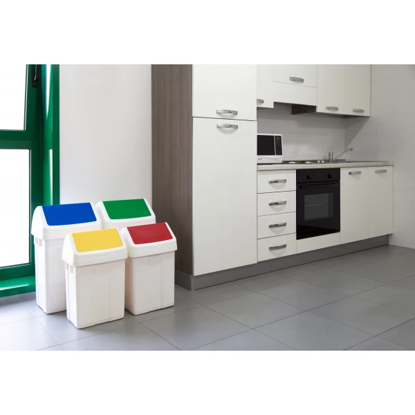 Урна для мусора оснащена поворотной крышкой, которая легко открывается лёгким нажатием руки. Для удобной и быстрой утилизации отходов верхняя частина урны является съёмной — это облегчает замену пакета и уход за изделием.