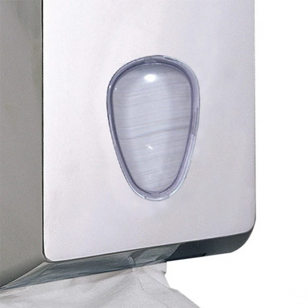 Держатель туалетной бумаги в пачках PLUS — современное и удобное решение для санитарных помещений. Корпус изготовлен из ударопрочного пластика с глянцевым покрытием серого цвета. Держатель предназначен для листовой туалетной бумаги в пачках V-сложения. Компактные размеры сочетаются с увеличенной вместимостью — до 350 листов. Полистовой отбор обеспечивает высокий уровень гигиены и экономичный расход бумаги. Возможна дозаправка в любое время без ожидания полного опустошения. Для контроля заполненности предусмотрено смотровое окошко. Открывание осуществляется нажатием кнопки.