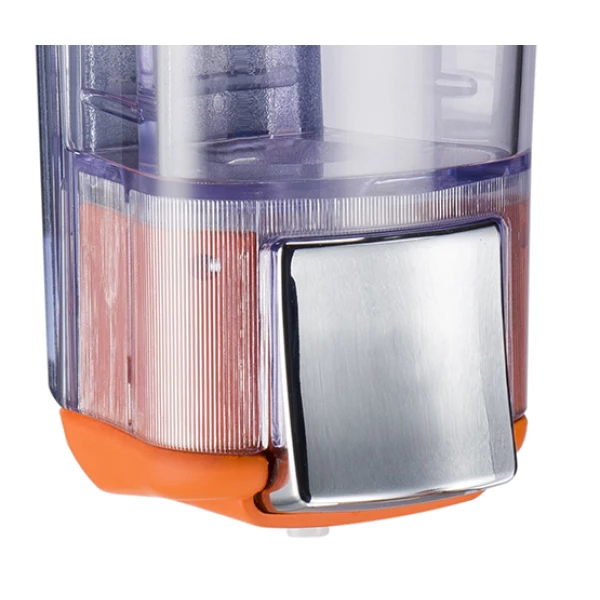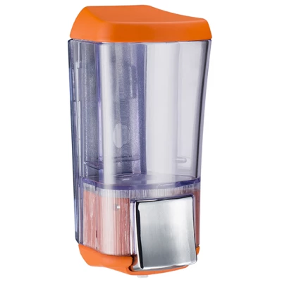 Дозатор жидкого мыла KALLA предназначен для оснащения общественных туалетных комнат в офисах, заведениях общественного питания и местах массового пребывания людей. Габаритные размеры изделия — 150x55x55 мм. Корпус выполнен из высококачественного пластика прозрачного и оранжевого цвета с покрытием краски Soft Touch, которое обеспечивает надежность и длительный срок службы, а также создает эффект «прорезиненной» поверхности. Прозрачная часть корпуса позволяет контролировать расход мыла. Дозатор оснащен скрытым замком, предотвращающим попадание посторонних предметов в емкость. Рекомендуется использовать совместно с оборудованием серии COLORED соответствующего цвета. Тип крепления — шуруп или липучка.