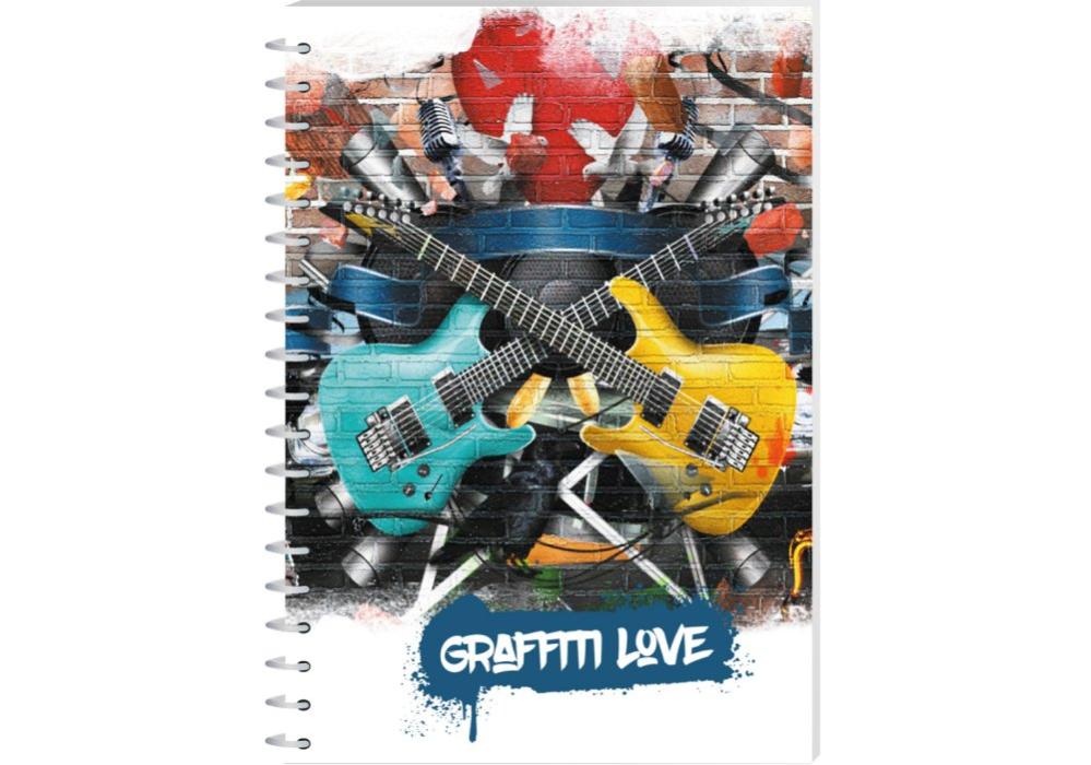 Внутренний блок тетради скреплен боковой спиралью, что позволяет легко переворачивать и загибать страницы.