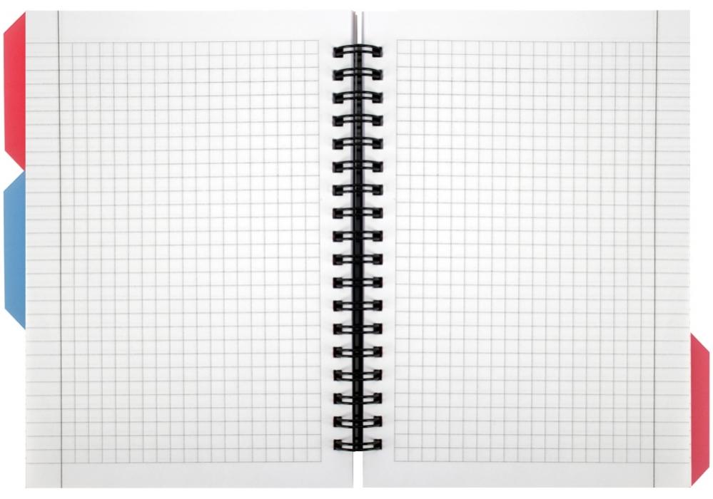 Внутренний блок содержит 100 листов в клетку, плотность бумаги 65 г/м2, с переставными разделителями, что позволяет удобно организовать записи по темам или предметам.