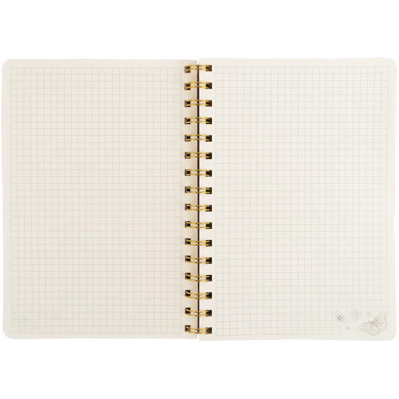 Твердая обложка хорошо держит форму и защищает страницы от повреждений, обеспечивая аккуратное хранение записей. Металлическая боковая спираль позволяет легко открывать блокнот на 360° и при необходимости аккуратно отрывать листы. Поверхность обложки с эффектом soft touch делает блокнот приятным на ощупь и удобным в использовании.