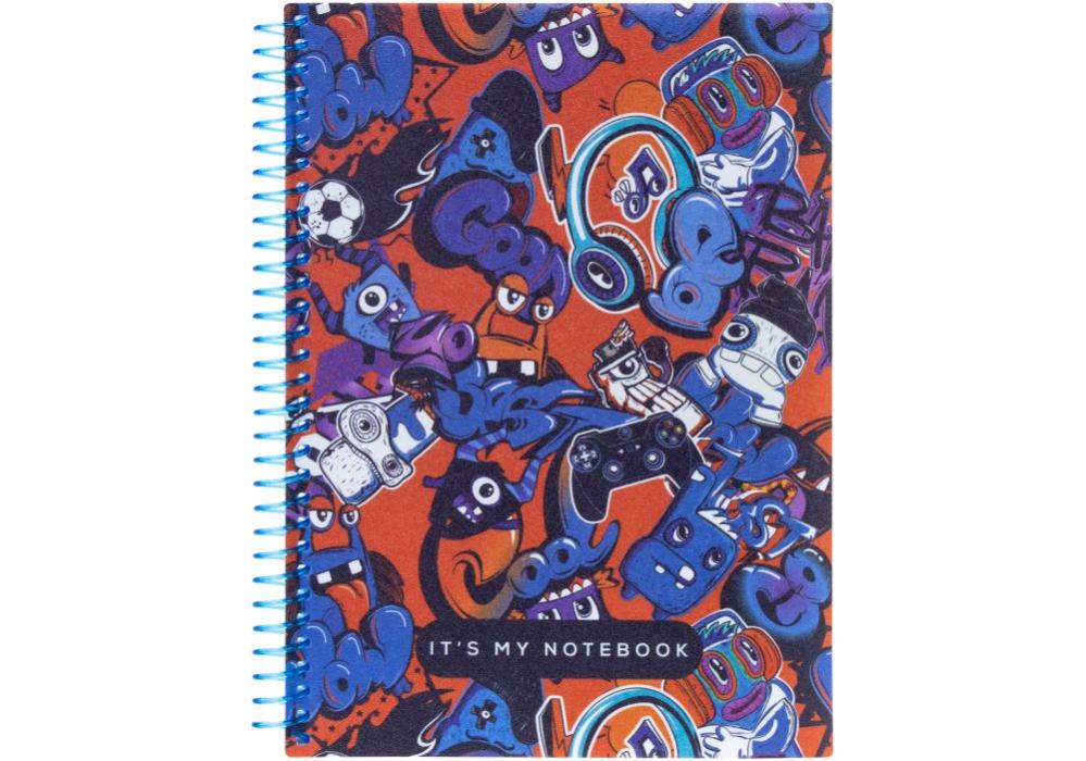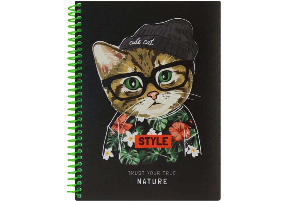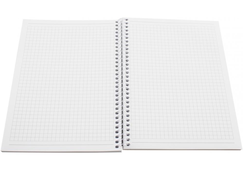 Внутренний блок тетради скреплен боковой спиралью, что позволяет легко переворачивать и загибать странички (все ложится идеально). Линовка: клетка, 80 листов. Тетрадь представлена во всех форматах А4, В5, А6.