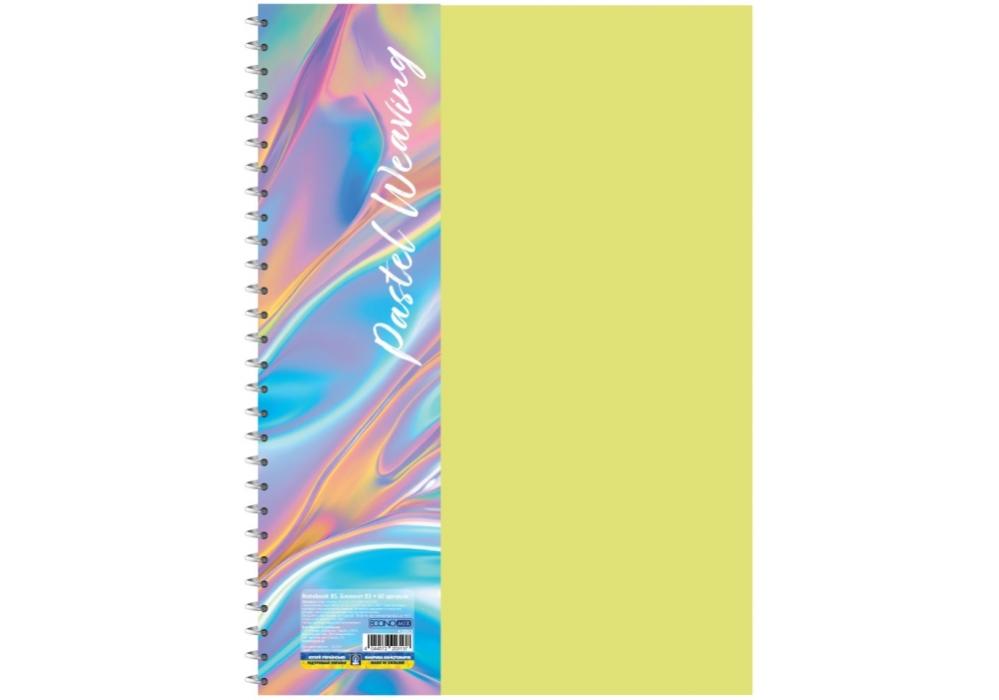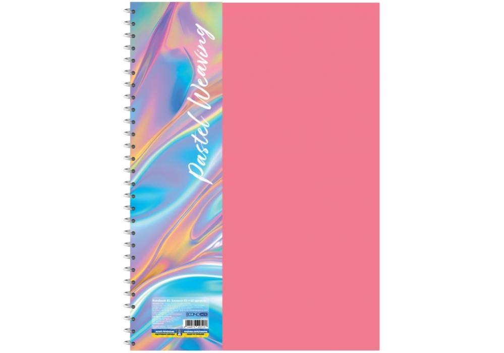 Блокнот ECONOMIX В5 пластиковая обложка фактура ткань боковая спираль 60 л клетка ассорти пастел E20313