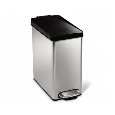 Узкая урна изготовлена из сатинированной нержавеющей стали — прочного, долговечного и устойчивого к коррозии материала. Компактная форма делает её идеальным решением для небольших помещений: ванной комнаты, туалетной зоны, офиса или размещения под рабочим столом.