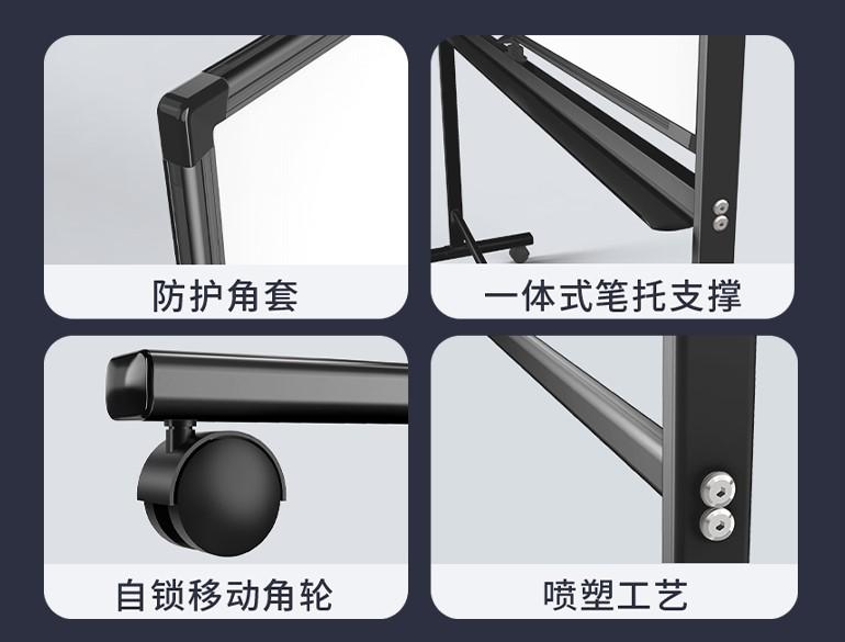 Прочная алюминиевая рама с пластиковыми углами и колесиками обеспечивает мобильность и устойчивость конструкции. Доска не регулируется по высоте, но подходит для регулярного использования в офисе, учебных и презентационных пространствах.