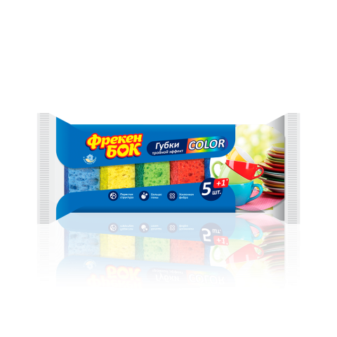 Кухонные губки «COLOR» ТМ Фрекен БОК выполнены в ярких цветах и делают процесс мытья посуды более комфортным. Изготовлены из крупнопористого поролона, структура которого позволяет образовывать большое количество пены даже при использовании минимального количества моющего средства. Губки приятны на ощупь и эффективно очищают посуду. Упругий поролон не крошится после высыхания и устойчив к длительному воздействию воды. Упрочненная износостойкая абразивная фибра надежно приклеена к поролоновому слою и помогает удалять сложные загрязнения. Для предотвращения размножения бактерий рекомендуется менять кухонную губку один раз в неделю.