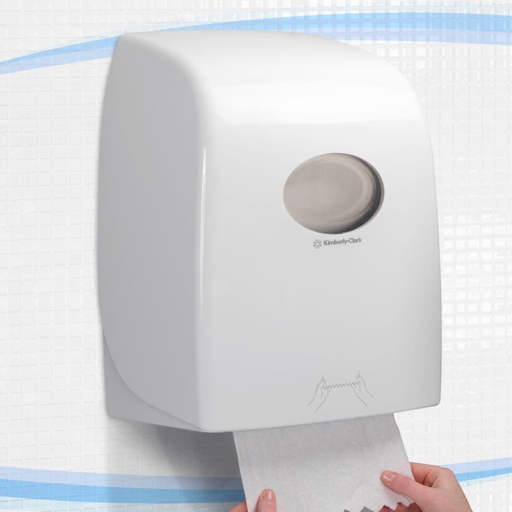 Диспенсер Kimberly-Clark Aquarius для полотенец в рулонах разработан для повышения уровня гигиены и эффективности использования бумажных полотенец в туалетных комнатах. Устройство обеспечивает подачу рулонных полотенец Scott по одному листу, что помогает исключить риск перекрестного загрязнения и снижает вероятность распространения бактерий. Диспенсер является оптимальным решением для помещений с высокой посещаемостью.