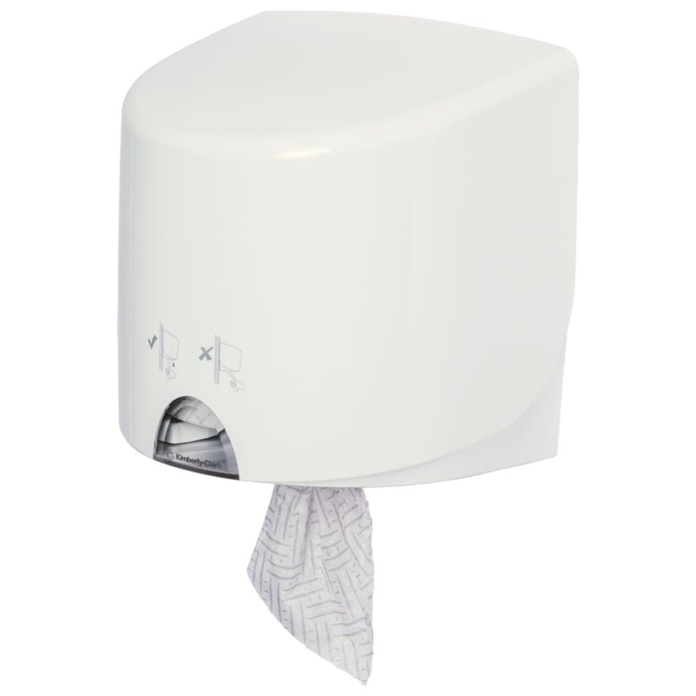 Диспенсер Kimberly-Clark Aquarius Roll Control для протирочного материала в рулонах с центральной вытяжкой обеспечивает быструю и удобную подачу салфеток WypAll по одному листу без прикосновения к диспенсеру. Он помогает снизить риск перекрестного загрязнения и предотвратить распространение бактерий. Конструкция диспенсера способствует сокращению расходов и упрощает обслуживание. Корпус выполнен в современном обтекаемом дизайне, легко очищается и обеспечивает гигиеничное использование, так как пользователи касаются только материала, который берут. Прочный корпус оснащен блокирующей кнопкой и замком с ключом для защиты от краж, а обзорное окно позволяет контролировать расход материала.