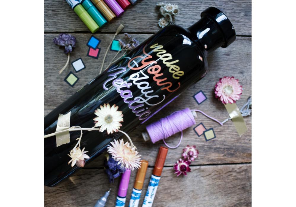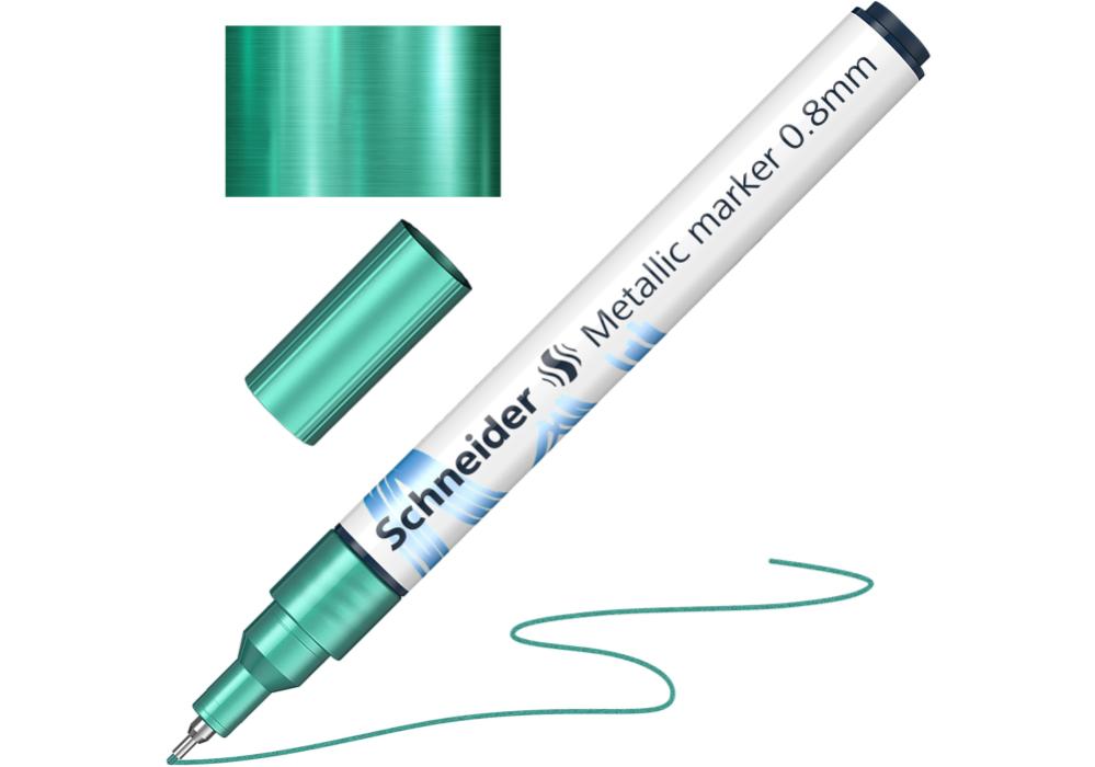 Металлический маркер предназначен для создания выразительных декоративных эффектов. Придает проектам яркий и заметный акцент. Ширина тонкой линии составляет около 0,8 мм. Цвет чернил — металлик. Новая разработка пигмента обеспечивает чистое и равномерное нанесение цвета. Алюминиевые чешуйки, покрытые цветными пигментами, создают выраженный металлический эффект с высоким уровнем блеска при различном освещении. Маркер подходит для работы по многим поверхностям, наилучший результат достигается на темных основаниях. Быстро высыхающие чернила подаются через клапанный механизм, что обеспечивает точный контроль подачи.