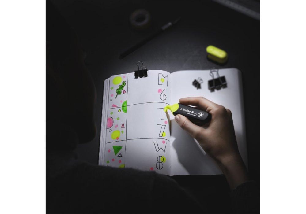 Яркий и узнаваемый текстовыделитель — один из самых популярных в Украине благодаря стильному дизайну, удобству и высокой надежности. Оснащён клиноподобным пишущим узлом, который позволяет проводить линии толщиной от 1 до 4,5 мм, что делает маркер универсальным для выделения текстов любой ширины. Подходит для всех видов бумаги, оставляя насыщенную флуоресцентную линию.