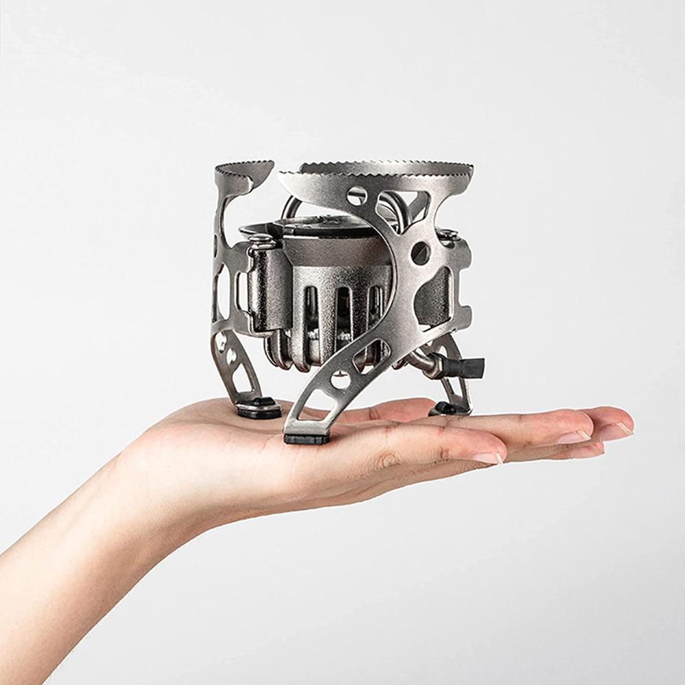 В разложенном состоянии диаметр горелки достигает 172 мм, благодаря чему на нее удобно устанавливать большие котелки и кастрюли. Три складные опоры для посуды оснащены мелкими зубчиками, предотвращающими скольжение. Дополнительную устойчивость обеспечивают три ножки с противоскользящими накладками, позволяющие безопасно использовать горелку даже на гладких поверхностях. В сложенном виде размеры модели составляют 93 x 92 мм.