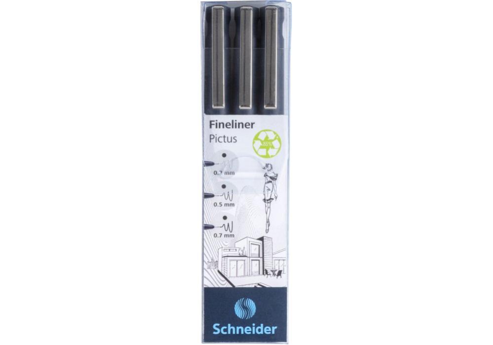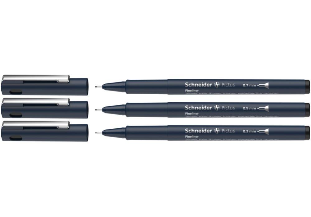 Набор линеров предназначен для рисования, создания эскизов и письма. В состав набора входят три линера с черными пигментированными чернилами на водной основе: 0,3 мм, 0,5 мм и 0,7 мм. Чернила долго сохраняют яркость линий и подходят для оформления документов в соответствии со стандартом ISO 14145-2. Металлический элемент вокруг пишущего узла придает аккуратный внешний вид и повышает срок службы изделий. Линеры удобно использовать с линейками и трафаретами. Корпус изготовлен на 85 процент из переработанной пластмассы.