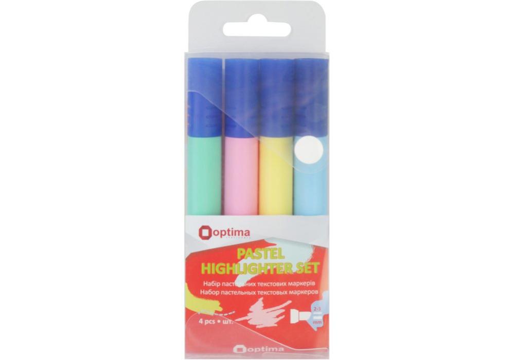 Набор текстовых маркеров Optima 1-4,5 мм 4 цвета пастель в пенале O15829