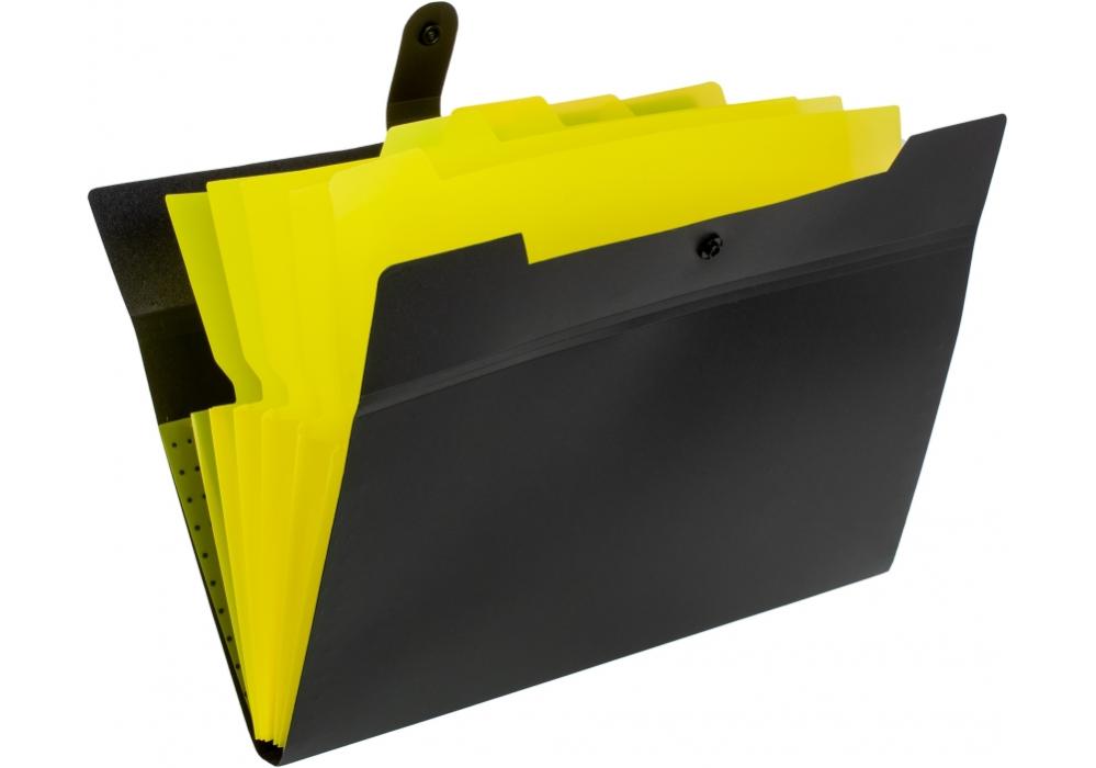Папка Optima на 6 отделений на кнопке с расширением A4 черная с лимонным O35540