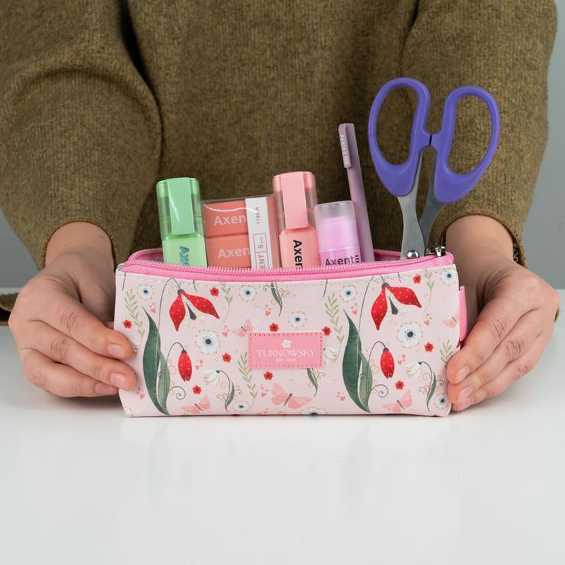 Модель имеет одно просторное отделение на молнии, что позволяет удобно хранить ручки, карандаши и другие канцелярские принадлежности. Благодаря универсальному дизайну аксессуар можно использовать не только как пенал, но и как стильную косметичку.