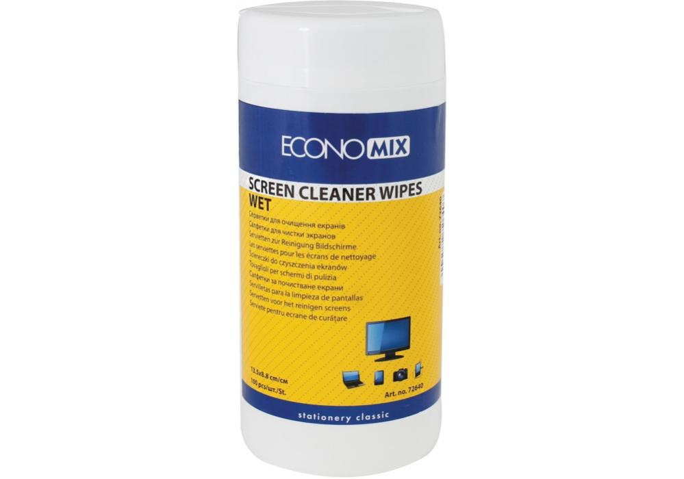 Салфетки Economix для очищения экранов влажные 100 шт круглая туба E72640