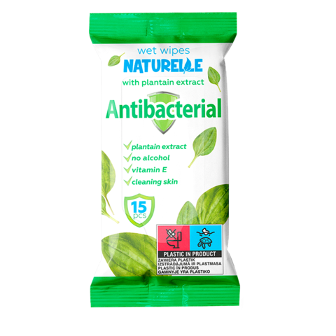 Салфетки влажные NATURELLE Аntibacterial с экстрактом листьев подорожника 15шт san.90175