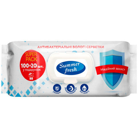 Антибактериальные влажные салфетки Summer Fresh имеют мягкую и прочную текстуру, что обеспечивает деликатный уход за чувствительной кожей.