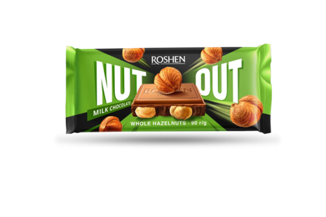 Шоколад Roshen Nut молочный с целым фундуком ПКФ 90г 18шт 4823077643392