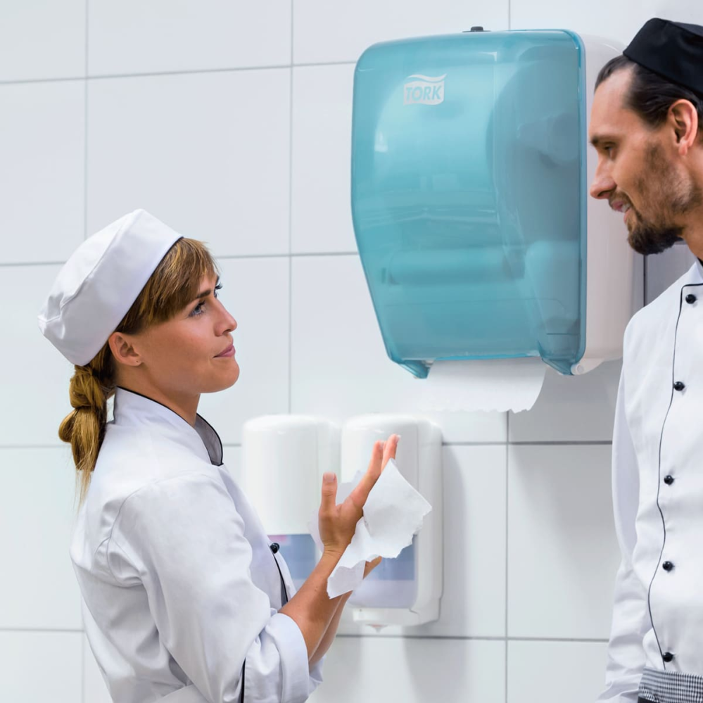 Диспенсер Tork Performance для зон с повышенной влажностью предназначен для полистовой подачи бумажных материалов для протирания. Он отличается высоким уровнем водонепроницаемости и большой вместимостью, что делает его идеальным решением для зон мытья рук и производственных помещений. Диспенсер разработан с нуля с учетом требований протоколов очистки и стандартов HACCP. Конструкция рассчитана на эксплуатацию во влажной среде и не требует демонтажа при мойке под давлением, обеспечивая безопасность и высокий уровень гигиены при каждом использовании. Гладкий и прочный пластиковый корпус облегчает обслуживание и поддержание чистоты.