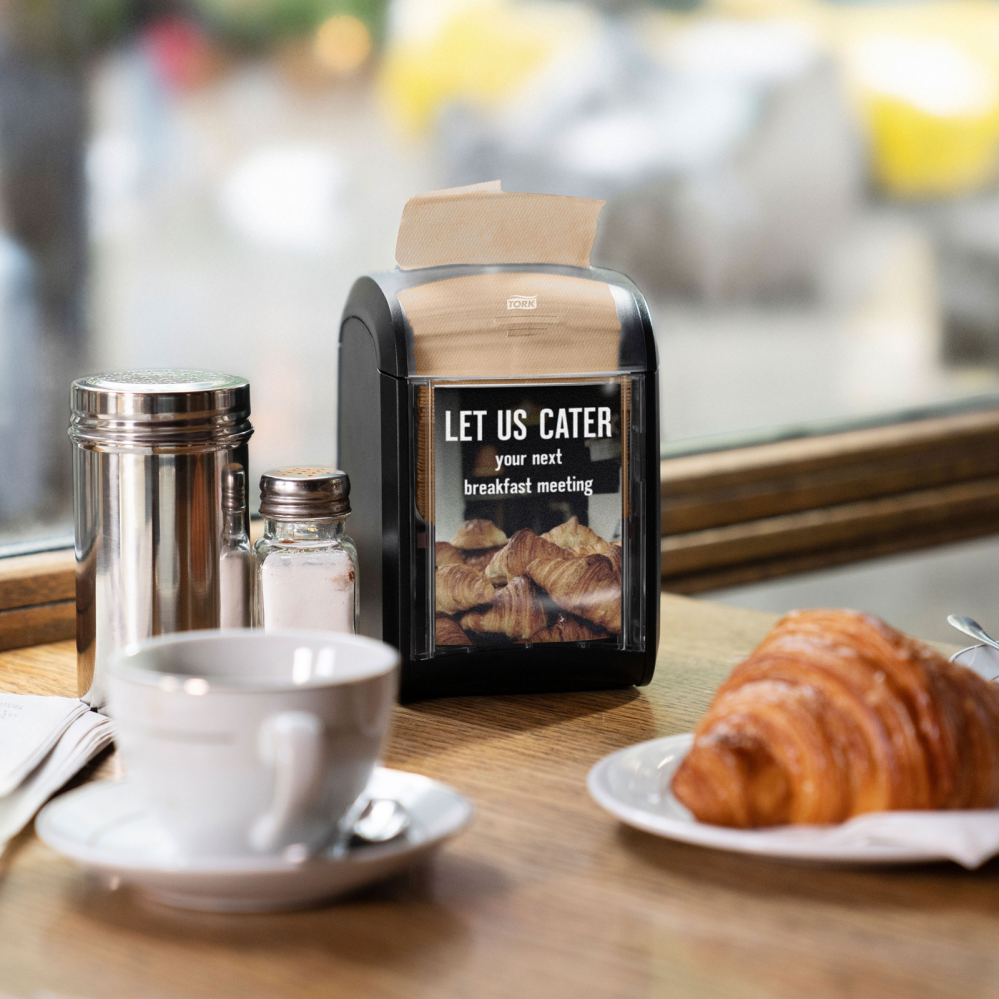 По сравнению с традиционными диспенсерами система Xpressnap Fit помогает значительно уменьшить количество неиспользованных салфеток, что способствует снижению затрат и отходов. Двухслойные салфетки натурального цвета обеспечивают комфорт при использовании и подчеркивают заботу заведения о гостях, сочетая практичность, экономичность и аккуратный внешний вид.