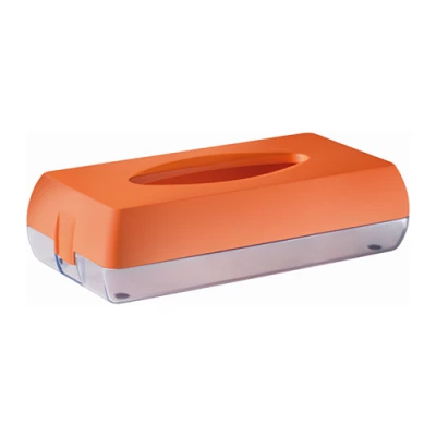 Тримач косметичних серветок COLORED призначений для стаціонарного розміщення коробки з косметичними серветками та розрахований на загальне користування. Корпус виготовлений з ударостійкого пластику з покриттям помаранчевою фарбою «Soft Touch», що забезпечує додатковий захист від пошкоджень. Закривається пластиковими засувками. Поштучний відбір серветок сприяє економному використанню. Конструкція забезпечує легку та швидку перезаправку з мінімальним обслуговуванням. Підходить для санітарних приміщень, передбачене настінне кріплення.