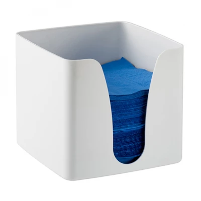 Тримач столових серветок ACQUALBA має простий та стильний дизайн, завдяки чому легко розміщується на будь-якому столі та не займає багато місця. Конструкція забезпечує швидке та зручне поповнення серветок із мінімальними витратами часу на обслуговування. Модель призначена для паперових серветок розміром 25x25 см у кількості до 50 штук. Виріб виготовлений із білого ударостійкого пластику, стійкого до щоденної експлуатації.