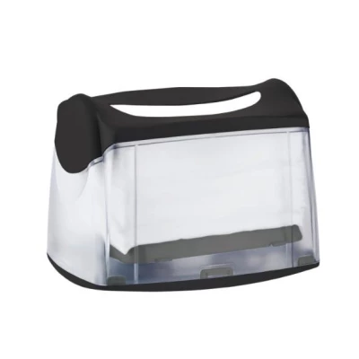 Корпус виготовлений з ударостійкого прозорого пластику, який забезпечує довгий термін експлуатації та візуальний контроль наповнення. Модель призначена для столових серветок V-складка та вміщує до 200 аркушів розміром 240x164 мм. Прозора кришка дозволяє контролювати рівень заповнення, а протиковзке покриття на дні фіксує тримач на гладкій поверхні. Передбачена можливість розміщення друкованого рекламного блоку на корпусі для акцій або оголошень.Артикул: A89807Купити -