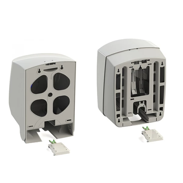 Оглядове віконце дозволяє контролювати діаметр рулону. Міцні зубці забезпечують зручний і акуратний відрив паперу. У комплекті передбачено адаптер на один лист, який обмежує одночасний відбір паперу до одного рушника. Адаптер можна встановлювати у наявні диспенсери з центральною подачею — він монтується у задню панель.
