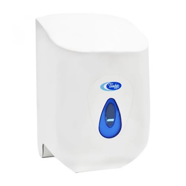 Тримач паперових рулонних рушників Large — міцна та надійна модель для приміщень з обмеженою площею, де виконуються різні види робіт і потрібен швидкий доступ до витратних матеріалів. Корпус виготовлений з міцного білого пластику, стійкого до інтенсивного використання.