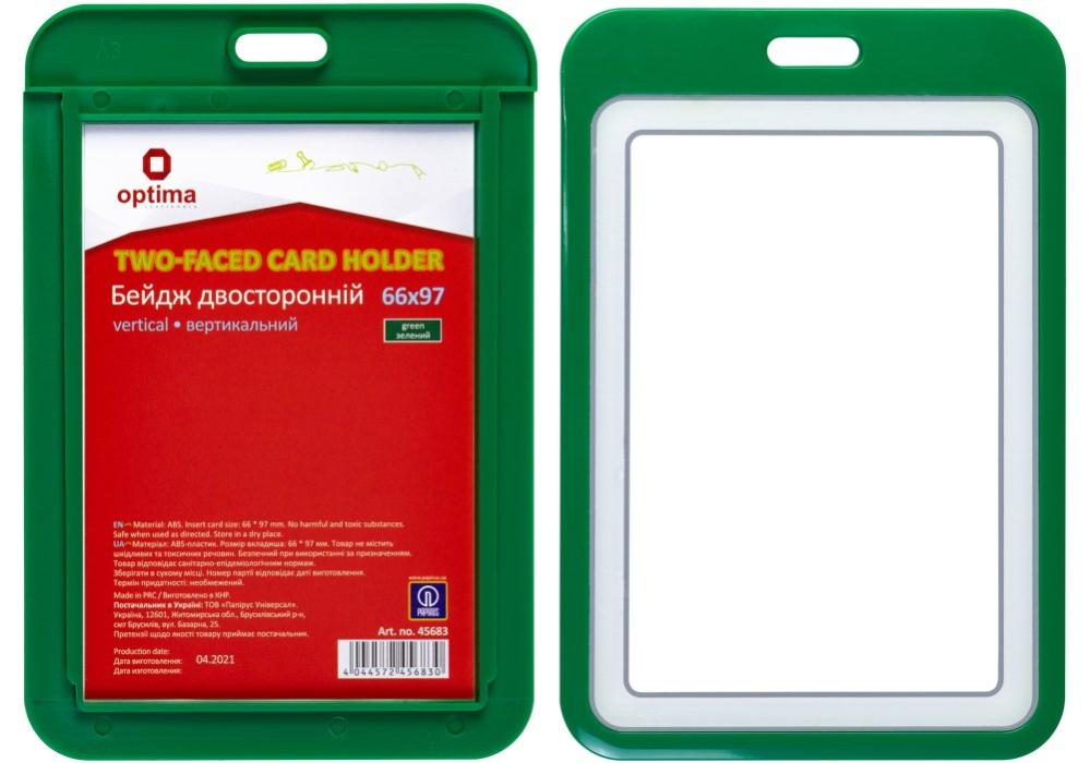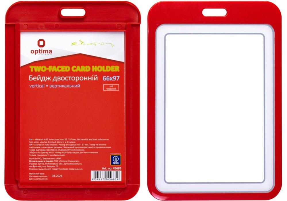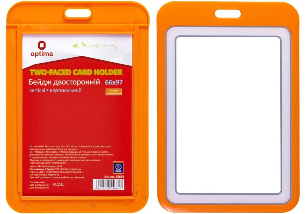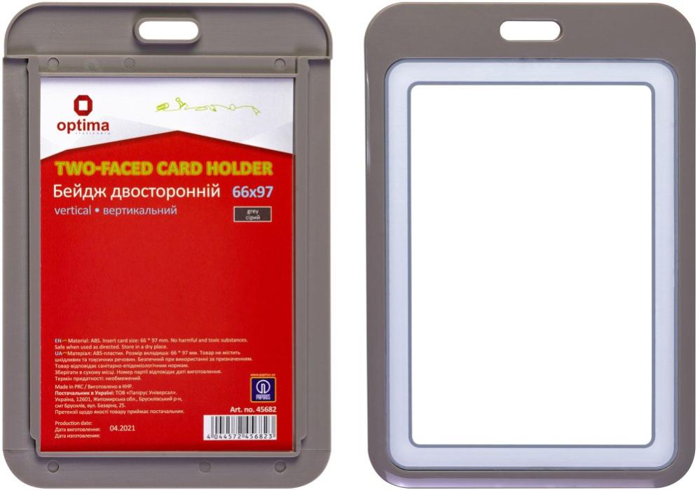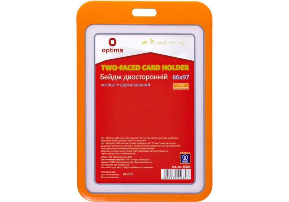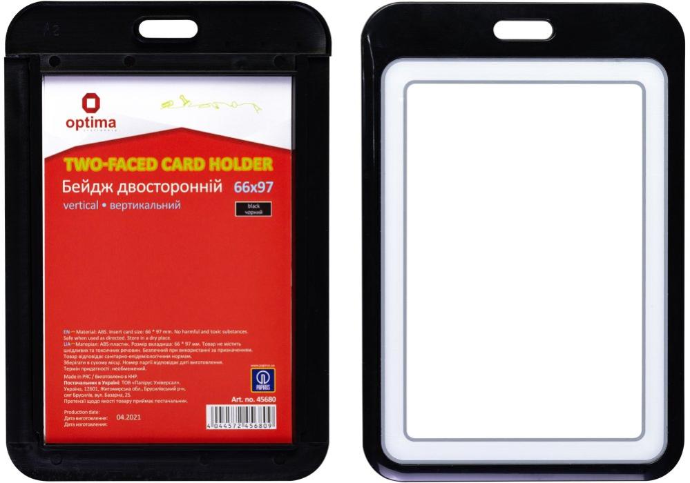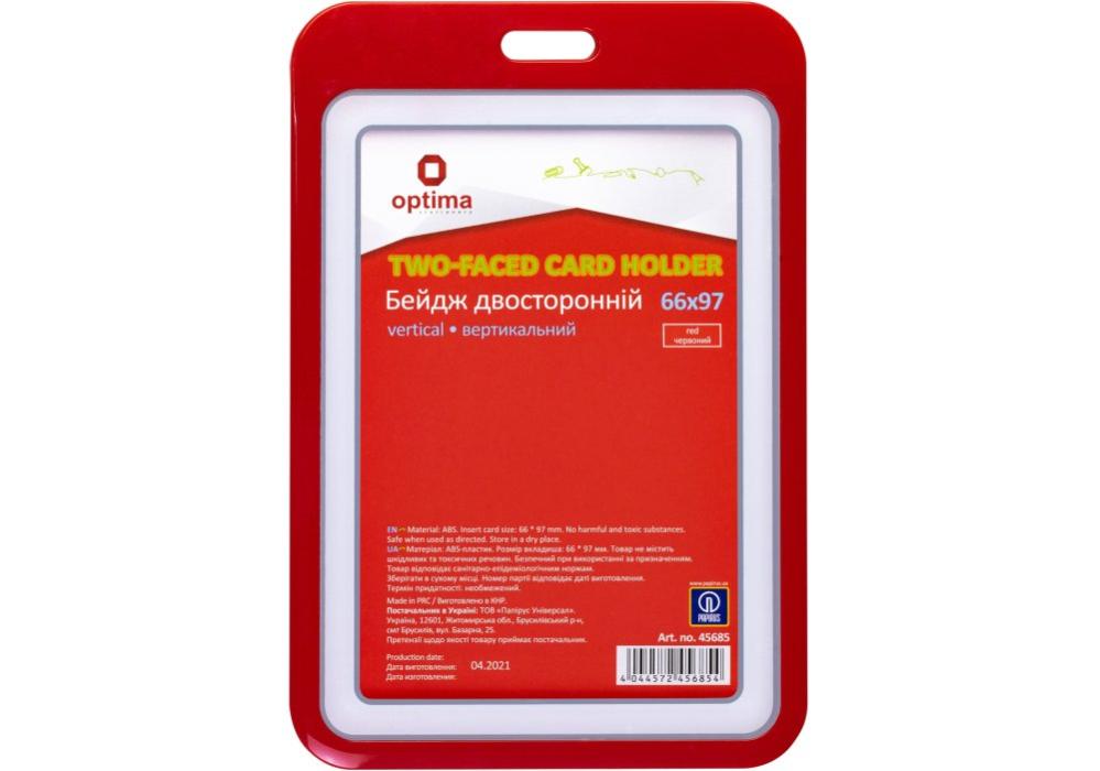 Бейдж OPTIMA преміальний вертикальний OPTIMA 66x97 мм двосторонній O45680