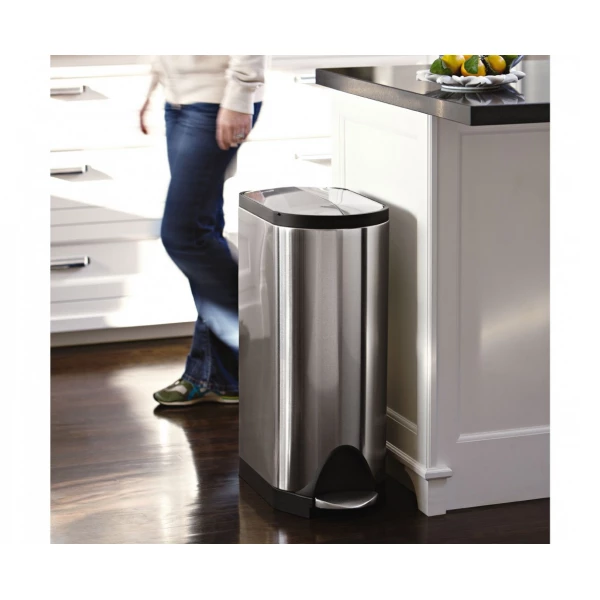 Відро з педаллю має інноваційну кришку, що відкривається посередині за принципом “крил метелика”. Така конструкція забезпечує зручний доступ і дозволяє комфортно користуватися урною навіть у вузьких просторах, де стандартна кришка може заважати. Елегантна компактна форма робить модель зручною для кухонь, ванних кімнат та офісів.