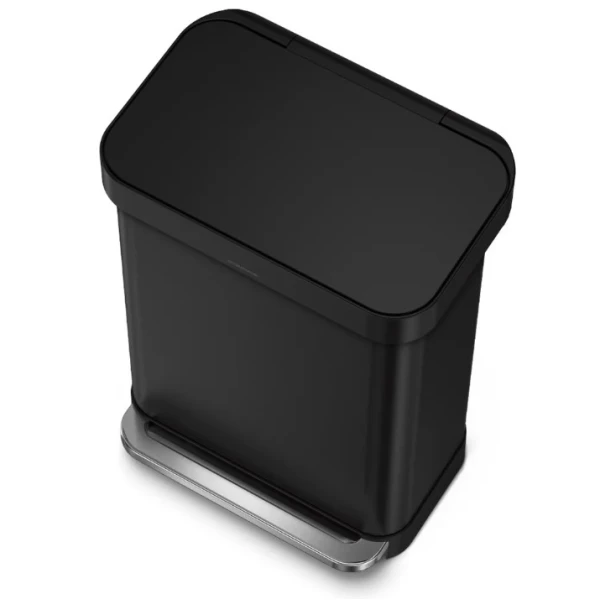 Прямокутне відро з педаллю виготовлене з високоякісної нержавіючої сталі та має продуману конструкцію, що забезпечує максимальний комфорт у користуванні. Головна особливість моделі — вбудована кишеня для зберігання запасних сміттєвих пакетів, яка дозволяє швидко їх замінювати.
