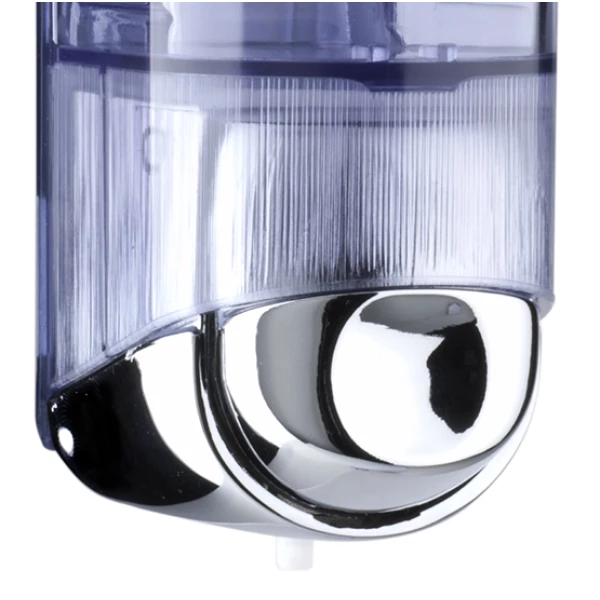 Внизу корпусу знаходиться надійна та зручна кнопка, що дозволяє економічній подачі мила. Його компактна форма дозволяє встановлювати його не лише у приміщеннях з великою прохідністю людей, а й удома.