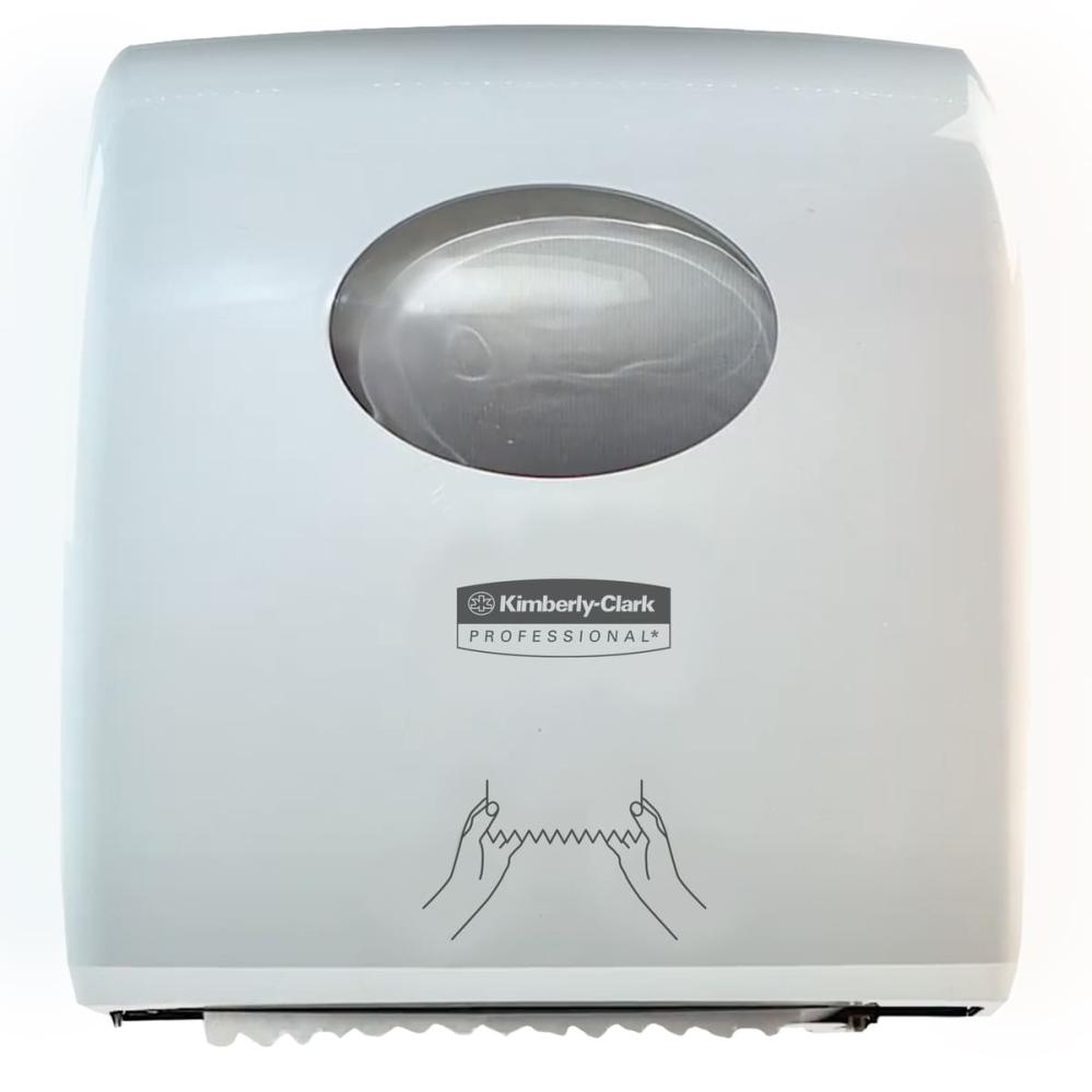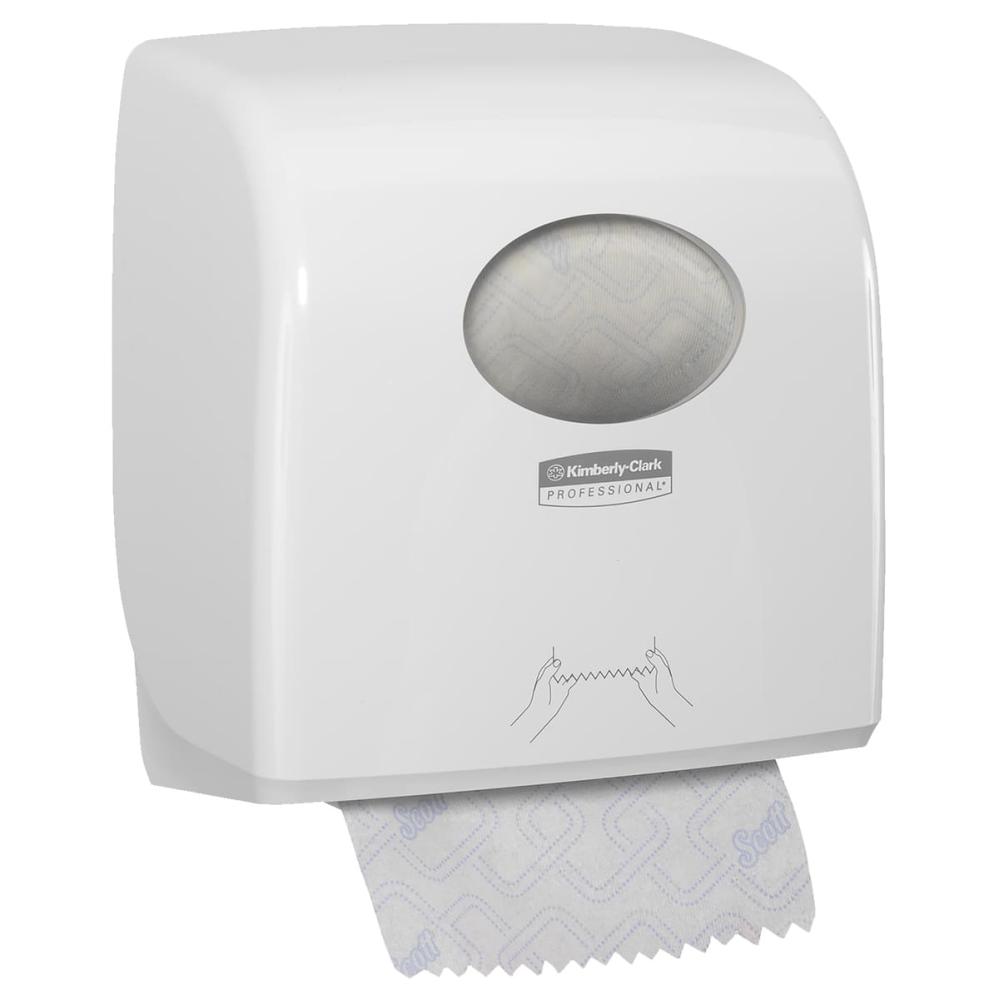 Диспенсер Kimberly-Clark Aquarius для рушників у рулонах Slimroll призначений для туалетних кімнат з високою відвідуваністю, де важливі високий рівень гігієни та контроль витрат за умов обмеженого простору. Компактний корпус має обтічну форму, що запобігає накопиченню бруду та дозволяє легко очищати поверхню одним рухом. Технологія повного використання рулону забезпечує постійну наявність рушників і мінімізує залишки.