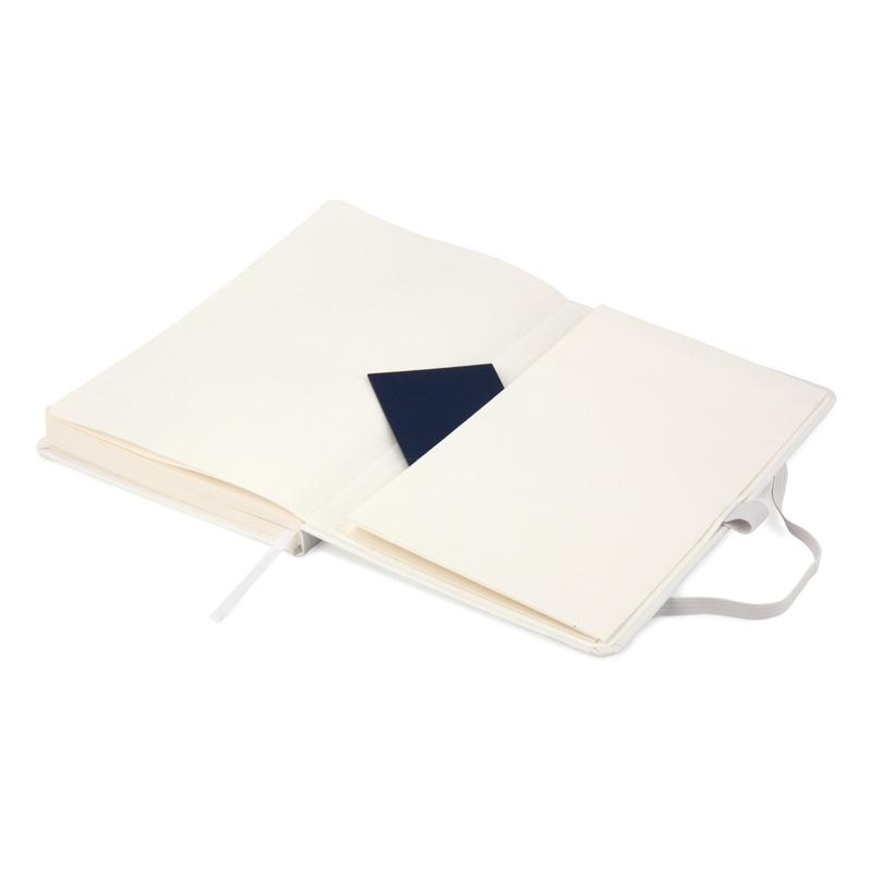 Внутрішній блок з офсетного паперу кремового кольору щільністю 70 г/м2, 96 аркушів, пролінованих у клітинку з вузькою рамкою. В даному виробі є також: перший аркуш для підпису, глибока кишеня-конверт на внутрішній стороні задньої обкладинки зі щільного кремового паперу для зберігання паперів (документів) і закладка-лясе кремового кольору.Артикул: BM.255108Купити -