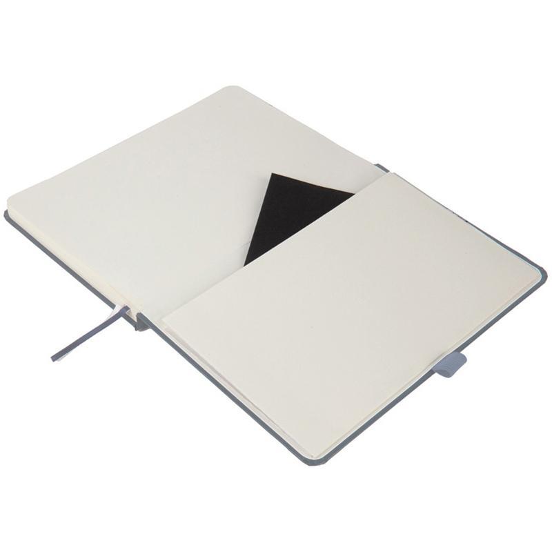 Внутрішній блок з офсетного паперу кремового кольору щільністю 70 г/м2, 96 аркушів, пролінованих у клітинку з вузькою рамкою. Даний виріб також має: перший аркуш для підпису, глибоку кишеню-конверт на внутрішній стороні задньої обкладинки зі щільного кремового паперу для зберігання паперів (документів) і закладку-лясе кремового кольору.Артикул: BM.255105Купити -