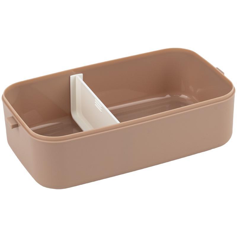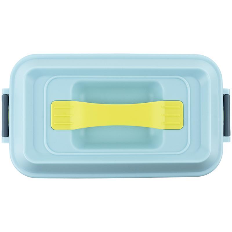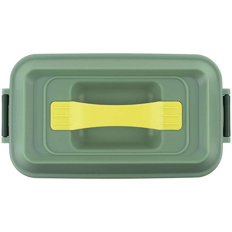 Міцна верхня кришка з ручкою забезпечує зручне перенесення, а надійні бічні клямки фіксують контейнери разом. Усередині — два містких відділення з окремими внутрішніми кришками для зручного поділу страв.