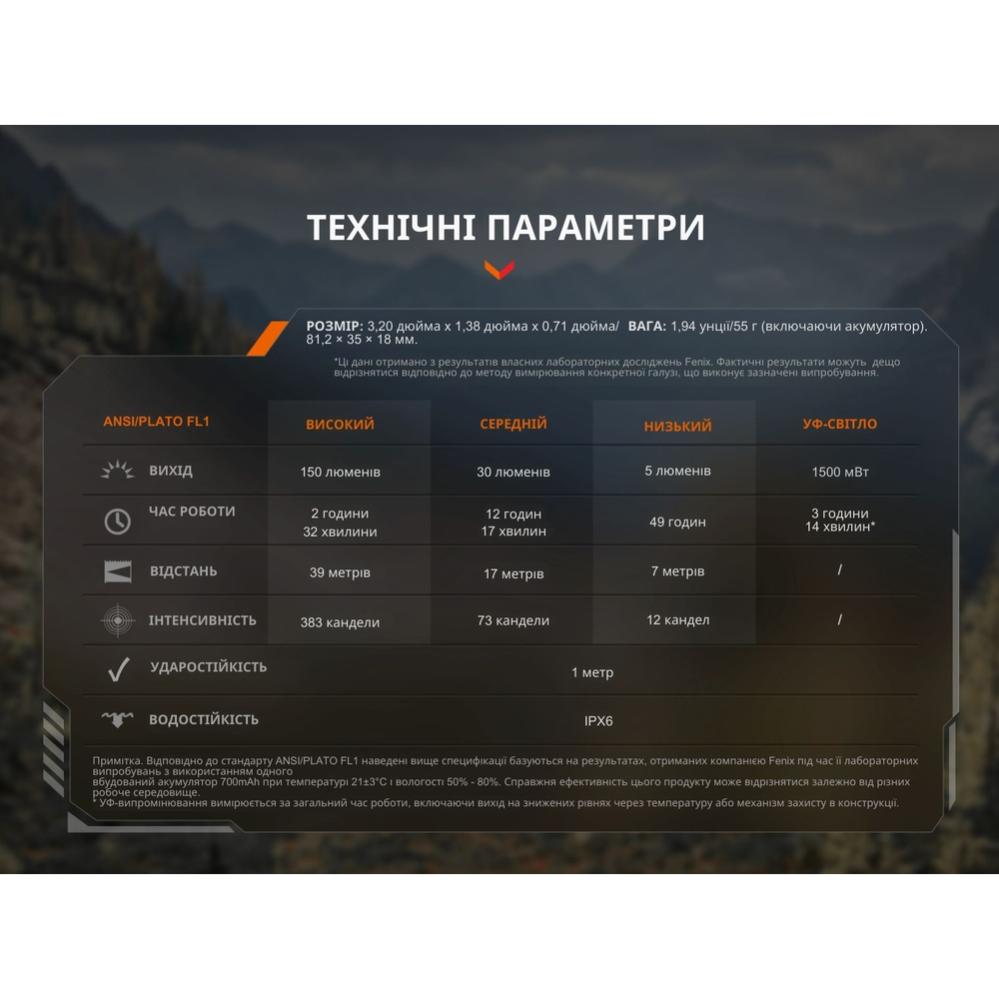 Світлодіодний ліхтар Fenix SW05R-UV — універсальна модель для щоденного використання, активного відпочинку та виконання робочих завдань. Компактний корпус поєднує функціональність і зручність.