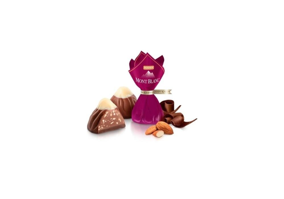 Цукерки «Монблан» Roshen з подрібненим мигдалем — солодкий делікатес із м’якою начинкою та насиченим горіховим смаком. Подрібнений мигдаль надає цукеркам приємну текстуру та аромат.