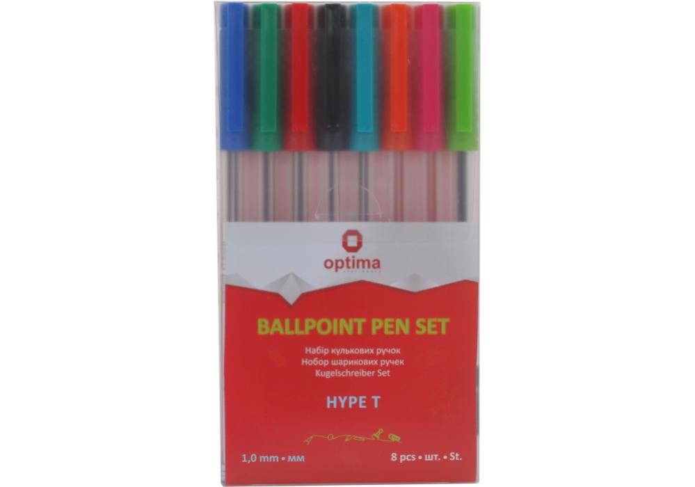 Набір кулькових ручок OPTIMA HYPE T 1,0 mm 8 кольорів у блістері O15737
