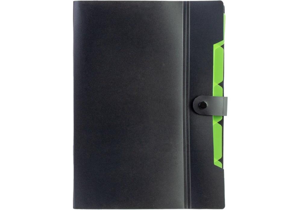 Папка OPTIMA на 6 відділень на кнопці з розширенням A4 чорна із салатовим O35539