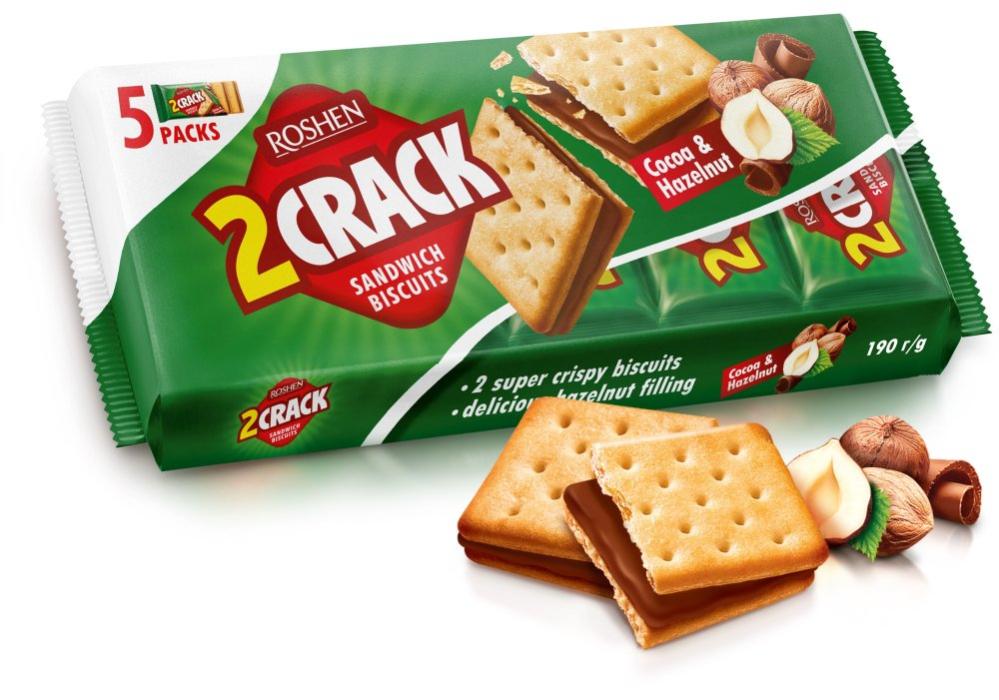 Печиво-сендвіч Roshen 2 CRACK з шоколадною начинкою ККФ 190г /26шт 4823077646539