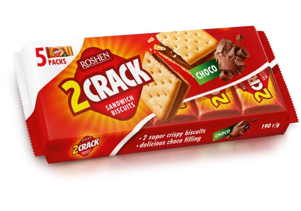 Печиво-сендвіч Roshen 2 CRACK з шоколадною начинкою ККФ 190г /26шт 4823077646539
