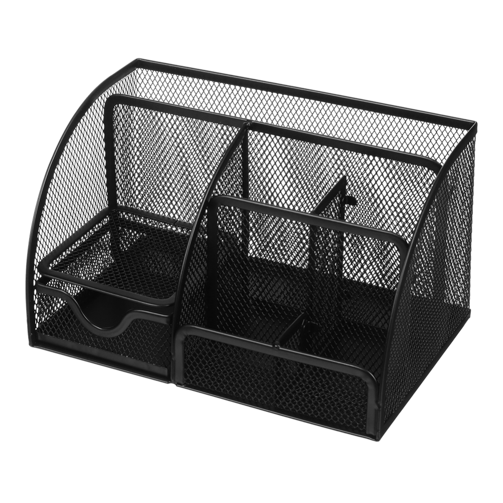 Органайзер має 7 відділень для зберігання канцелярського приладдя. Розмір — 220х140х130 мм. Для безпечного використання виріб оснащений згладженими швами.