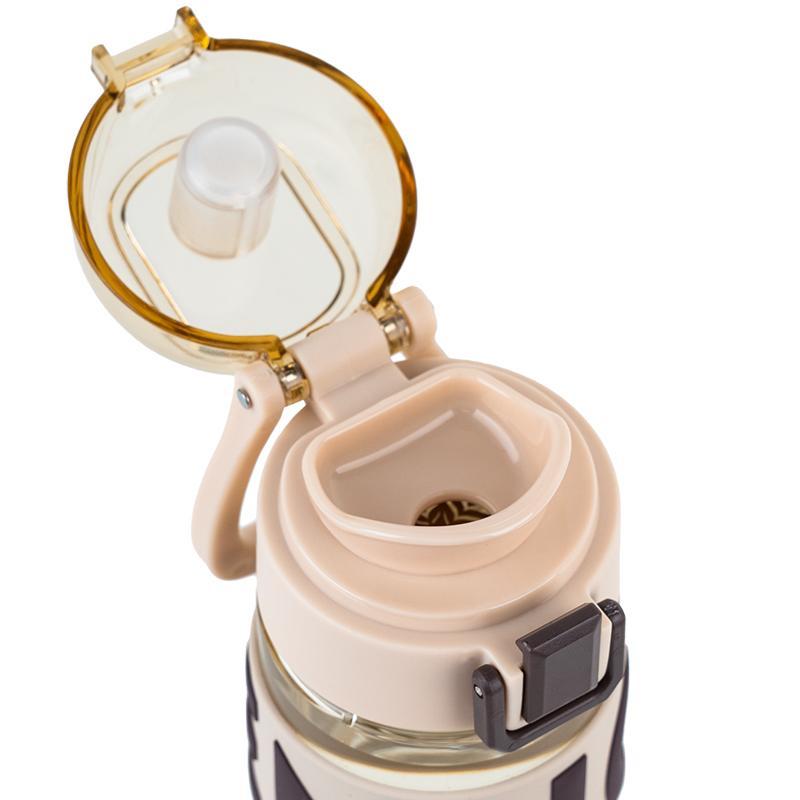 Силіконова вставка на корпусі забезпечує надійне утримання, навіть коли поспішаєш, а пластикова ручка дозволяє зручно переносити пляшку. Мінімалістичний дизайн додає настрою щодня.