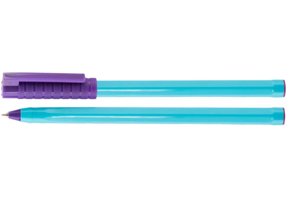 Ця кулькова ручка з фіолетовими чорнилами забезпечує м’яке та акуратне письмо завдяки товщині лінії 0,7 мм. Пластиковий корпус блакитного кольору легкий, міцний і зручний для щоденного використання.