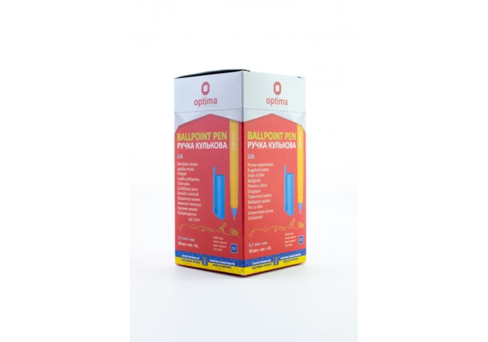 Ручка кулькова OPTIMA UA 0,7mm корпус жовтий пише синім O15699